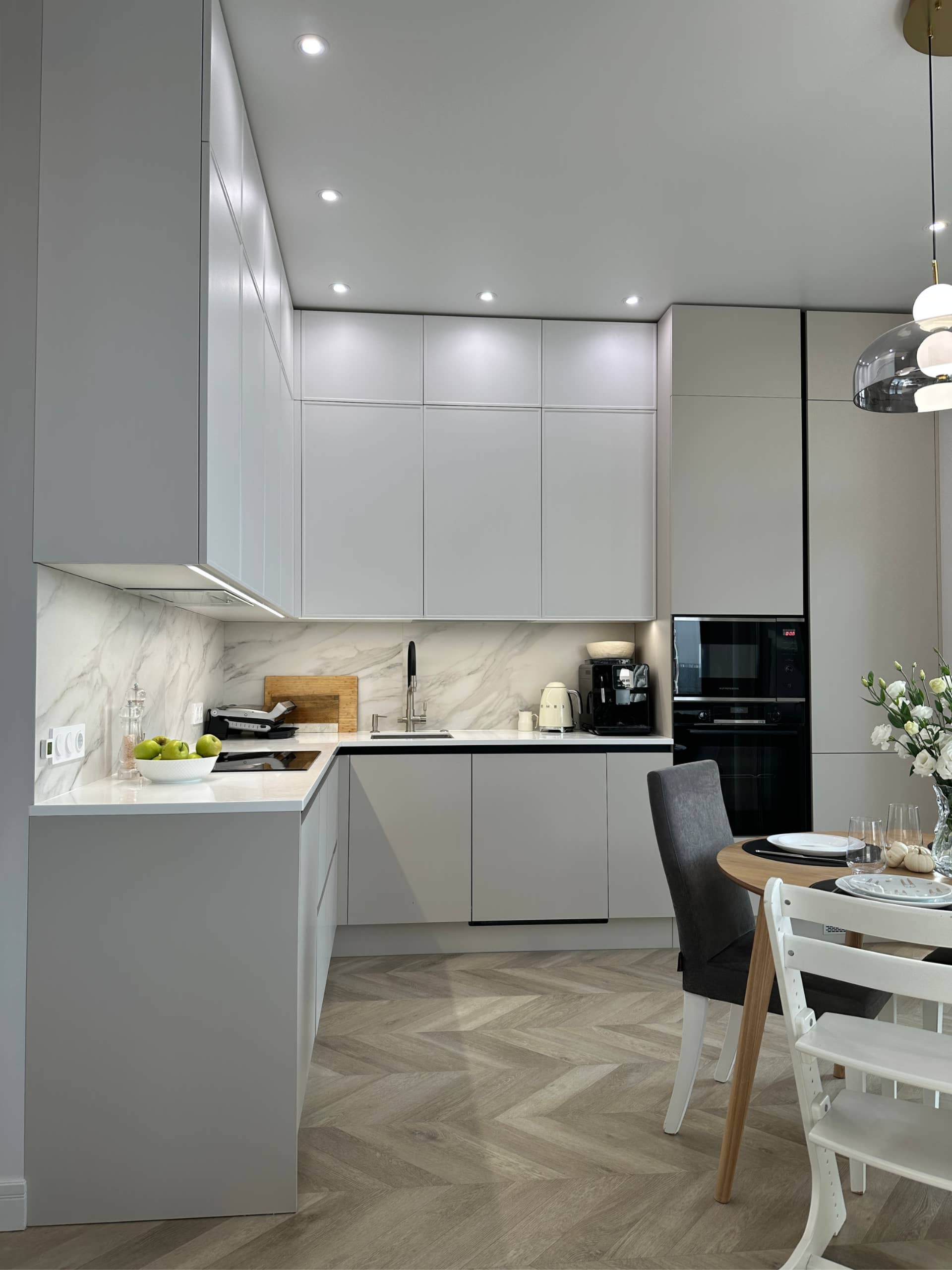 Согласуем удобные для вас дату и время. Встречу можем провести на объекте или в офисе (если нужна помощь в подборе материалов или хотели бы рассчитать стоимость за 1-2 месяца до получения ключей). Консультация бесплатная.